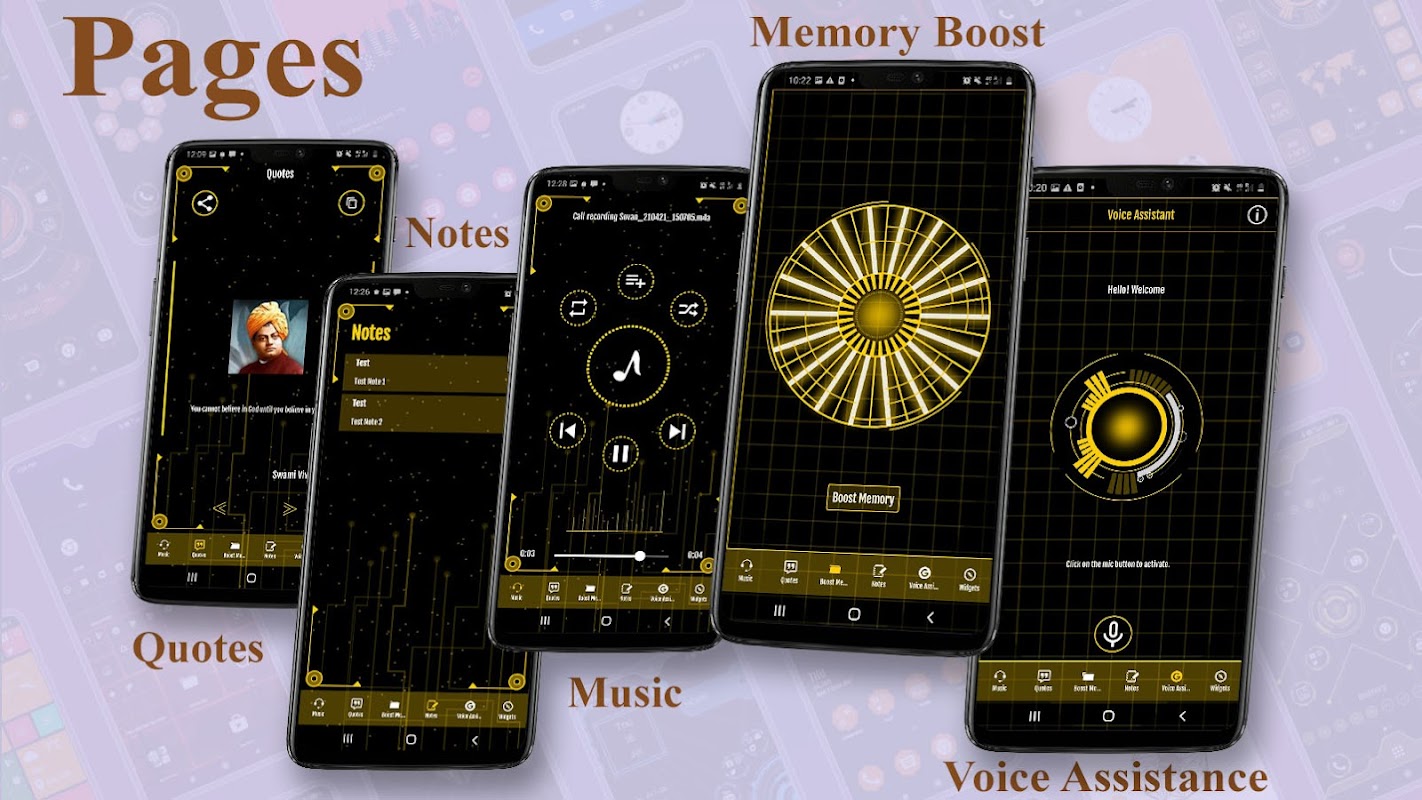 In questo launcher di temi otterrai AppLock, HideApp, sfondi Hitech, sfondi semplici in stile vetor, funzionalità cartelle, citazioni motivazionali, note, assistenza vocale, lettore musicale e molto altro.