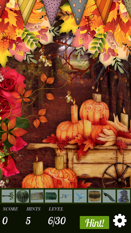 Ammira i meravigliosi colori del cambio delle stagioni nella nostra bellissima nuova avventura di oggetti nascosti. Esplora i giardini brulicanti di alberi e foglie di ogni colore. Caccia agli oggetti nascosti abilmente nascosti.