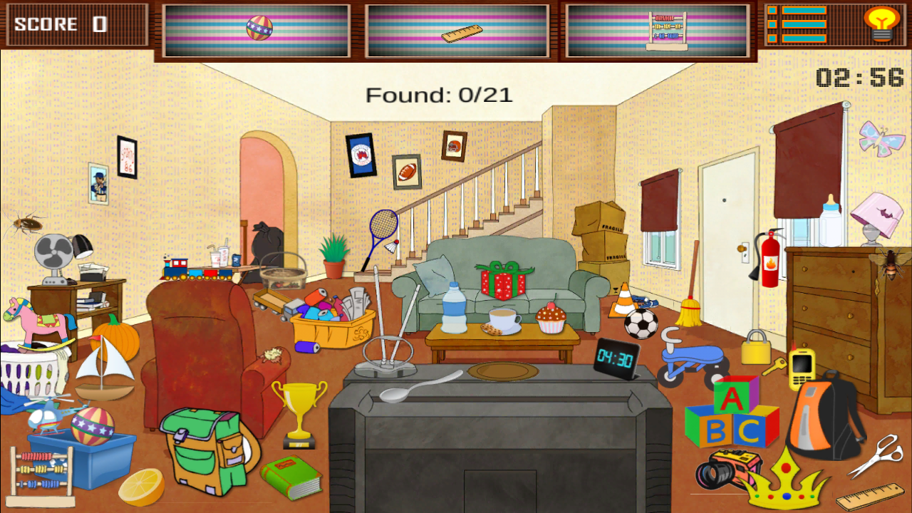 - Cerca gli oggetti nascosti, ogni volta che si gioca lo stesso livello, si ottiene nuovi elementi mancanti.