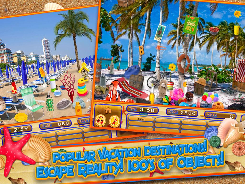 Vacation to Beaches Around the World! Explore breathtaking Beaches in California, Florida, Italy, Hawaii, Maui, Caribbean, Mexico, Brazil and more finding hidden objects! Enjoy a Tropical Beach Vacation!