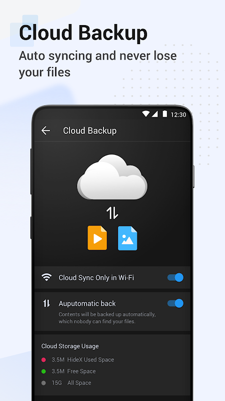 Cloud backup and cloud storage are provided for all hidden items. The storage space of your device can be expanded to unlimited with cloud storage. Also no worries about losing files any more as automatic cloud backup is available to prevent your files from getting lost.
