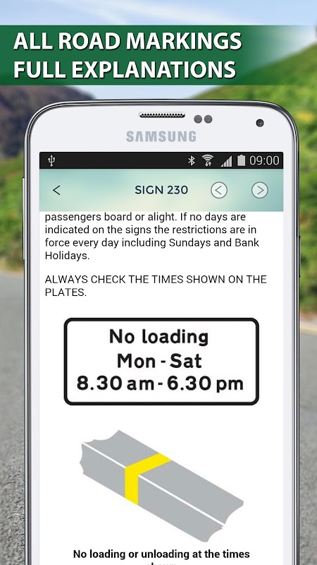 - Include un elenco completo della segnaletica stradale del Codice della Strada Ufficiale del Regno Unito