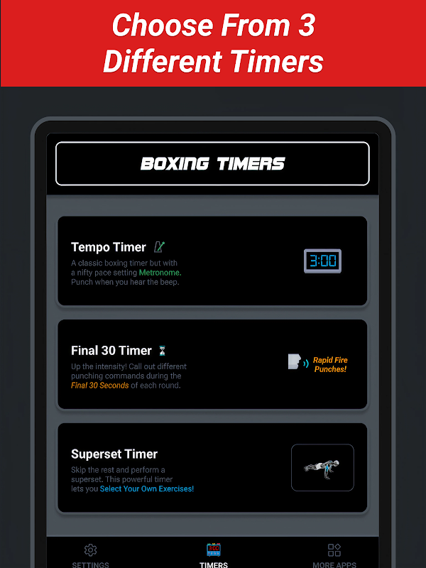 Mettiti in forma per combattere con 3 diversi timer a intervalli per il boxe: