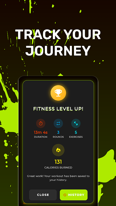 📊 Monitoraggio dei progressi - Cronologia degli allenamenti - Visualizza tutte le sessioni completate - Ripeti gli allenamenti precedenti - Ritorna alle sessioni che ti hanno spinto di più - Stime delle calorie bruciate - Guarda i tuoi progressi aumentare nel tempo
