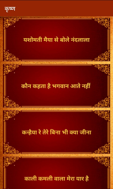 L'app Hindi Bhajan è progettata con tutti i Bhajan di Dio e delle Dee in lingua hindi