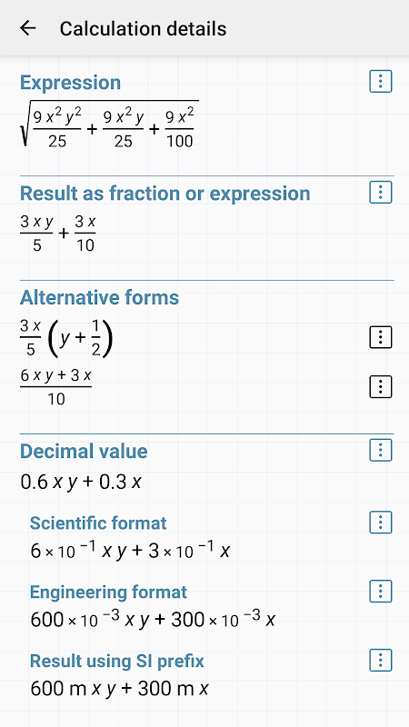 Puoi scrivere espressioni in modo naturale e osservare i tuoi calcoli. Il risultato viene visualizzato come numero, espressione semplificata ecc.