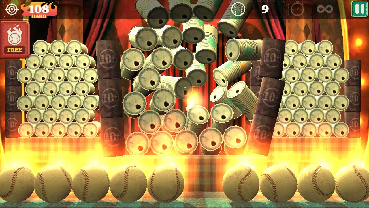 - Modalità limite palla: colpire il barattolo, rompere i piatti, segnare il bersaglio, colpire il frutto