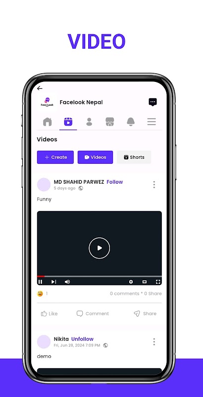Facelook Nepal è una piattaforma di social networking che ci consente di rimanere in contatto con amici, familiari e comunità. L'utente può pubblicare aggiornamenti, foto e video, interagire con gli amici tramite Mi piace, commenti e condivisioni.