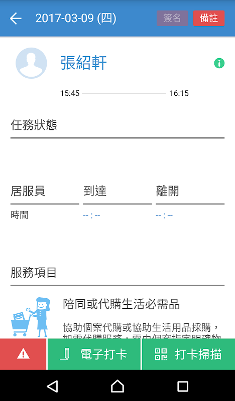 本系統將居家照顧服務流程數位化,讓單位的各項居服工作智慧化,同時更有效提升居服員的作業效率。