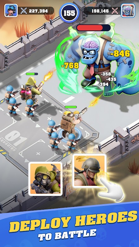 Non tutti i sopravvissuti sono normali: recluta e addestra potenti eroi, ognuno con abilità uniche. Schierali in battaglia per rivendicare nuovi territori e proteggere il tuo rifugio.
