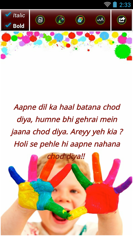 - Now, design your holi greeting message with changing fonts, colors, most attractive holi background papers.