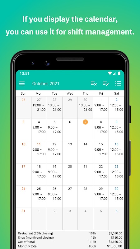 Puoi controllare il tuo stipendio sul calendario che viene visualizzato per primo quando apri l'app.