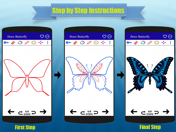 Come disegnare un'app farfalla è semplice e facile da usare. Ti aiuteremo a imparare come disegnare una farfalla usando un'eccezionale istruzioni passo-passo e un tutorial completo per disegnare una farfalla. Vuoi sorprendere i tuoi amici con un bellissimo disegno di una farfalla o vuoi semplicemente imparare a disegnare una farfalla? Allora questo gioco di disegno di animali gratuito è il migliore per te.