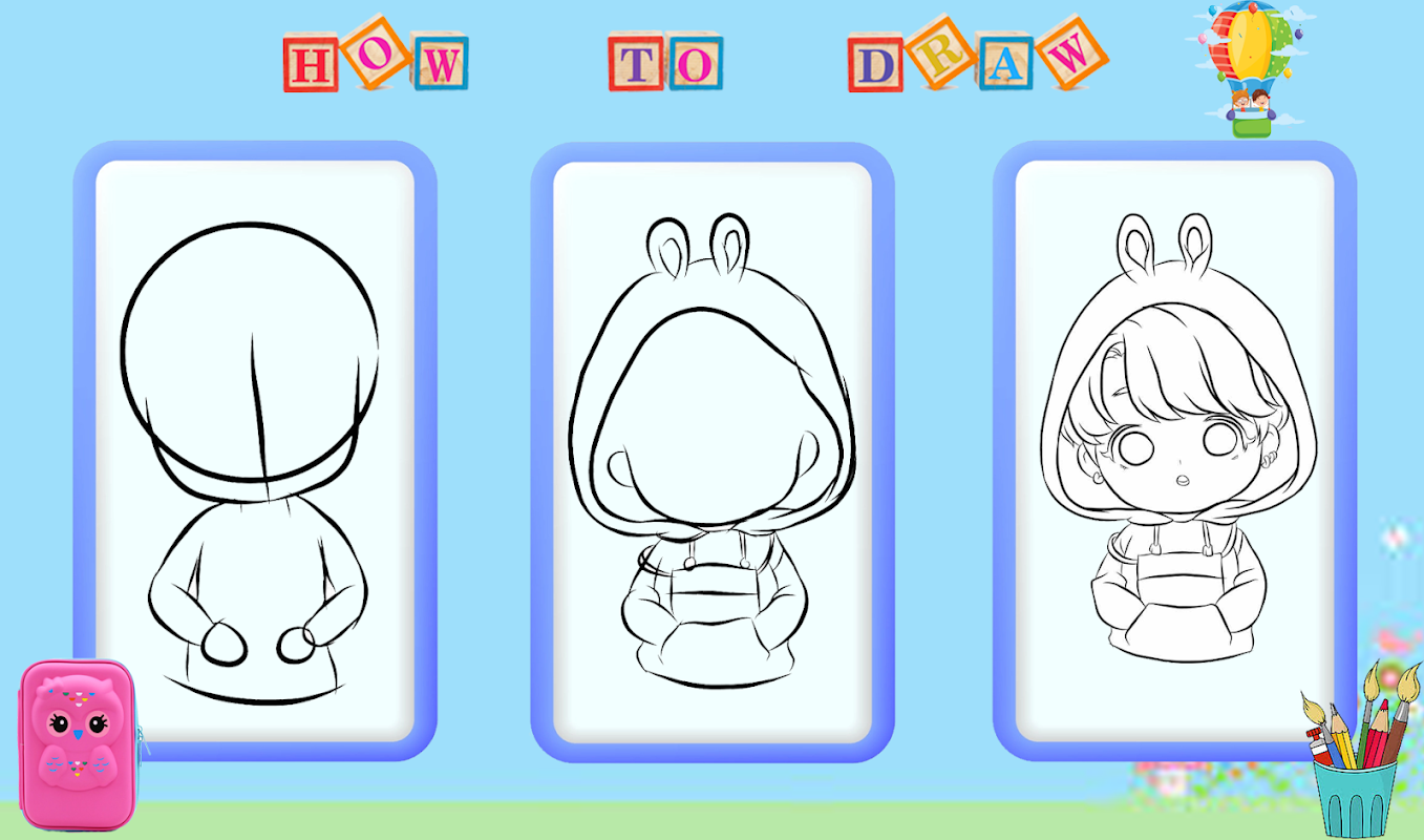 Impara come disegnare i personaggi BTS dei cantanti K-Pop contiene molti disegni passo dopo passo dei personaggi BTS dei cantanti K-Pop per aiutarti a imparare e padroneggiare le tue abilità di disegno. Poiché Draw K-Pop Singers BTS Characters è un'app di autoapprendimento, quindi persone di qualsiasi età possono usarla per imparare a disegnare e colorare usando attraenti disegni e schizzi di supereroi chibi.