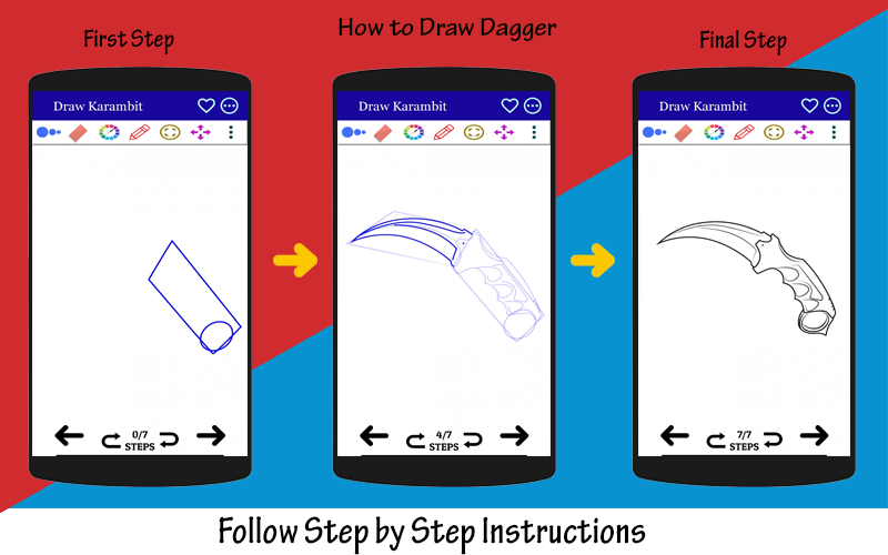 Le nostre app tutorial per disegnare pugnali e braccia fredde per principianti appositamente progettate per coloro che vogliono imparare a disegnare, migliorare le proprie capacità di disegno, la propria creatività e la propria immaginazione. È incredibile cambiare il tuo livello di disegni ad alto livello con molti disegni di pugnali come ispirazione per ogni età con molte cose carine da disegnare.