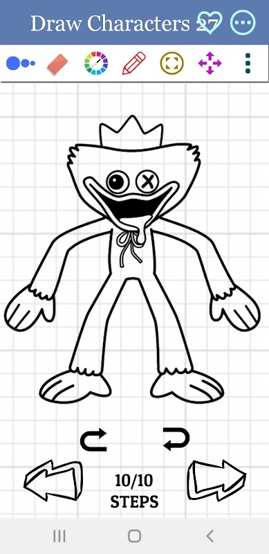 How to Draw Huggy Wuggy Easy è un'app in cui anche i non professionisti possono imparare a disegnare mostri con la nostra guida passo passo. Ogni personaggio ha da 5 a 15 passaggi da completare. puoi anche utilizzare strumenti per disegnare caratteri all'interno dell'app, strumenti come matita, gomma, spostamento, zoom, colore e altro.