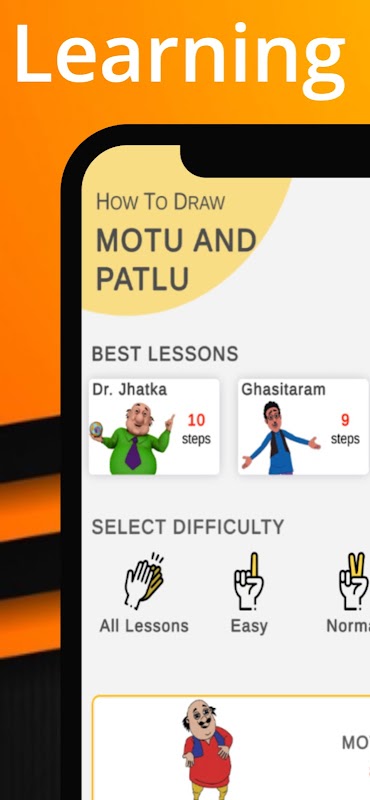 Spero che la nostra app tutorial "Come disegnare i personaggi di Motu Patlu passo dopo passo" ti aiuti!