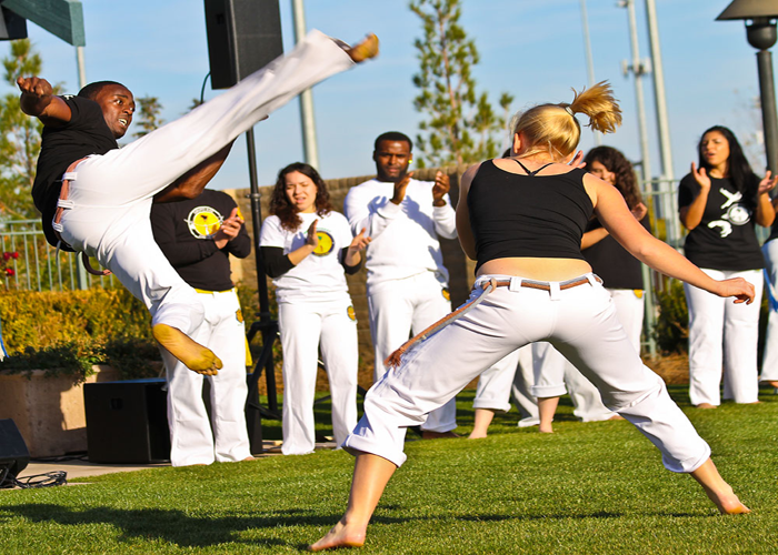 La Capoeira è un elemento che include danza, acrobazie e musica per formare un'arte marziale di incredibile bellezza e potenza. È noto per i movimenti rapidi e complessi, che utilizzano principalmente potenza, velocità e leva per una vasta gamma di tecniche, curve e calci altamente mobili. Il movimento in capoeira ricorda la danza ed è decorato con calci al ritmo della musica. La danza di Capoeira è praticata con la musica tradizionale di capoeira berimbau.