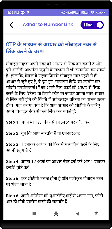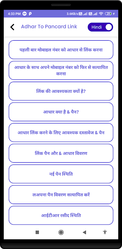 La nostra app non è un'applicazione ufficiale, è solo una linea guida su come collegare aadhar con cellulare e aadhar con pan card.