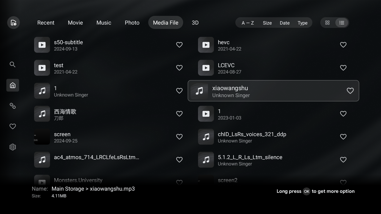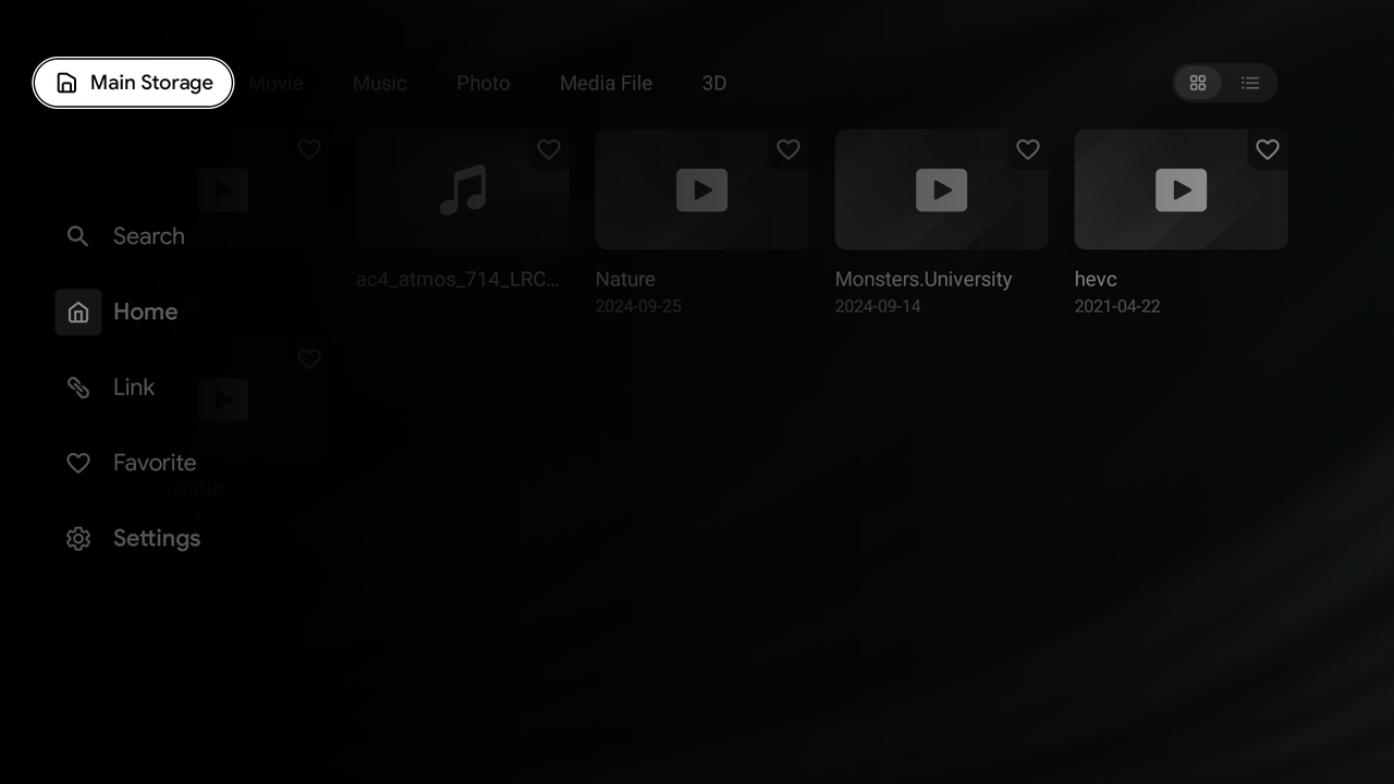 HPlayer è un lettore TV audio e video che ti offre la migliore esperienza di intrattenimento audio e video, supportando una varietà di formati di file e formati di codec. Supporta una riproduzione video HD 4K fluida. Supporta la funzione di trasmissione del suono surround Dolby e DTS, per offrirti il massimo del suono surround. Fornisce un modo conveniente per condividere le risorse video con la TV tramite disco rigido, rete, ecc.