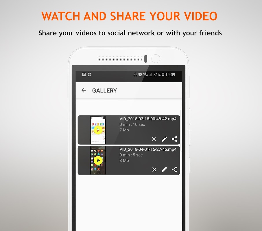 Also, there are many other features in this free screen recorder such as bit-rate, setting video resolution, saving directory selection, screen orientation, customized timer to stop, view/share or delete your recorded videos... All of them are free for you!