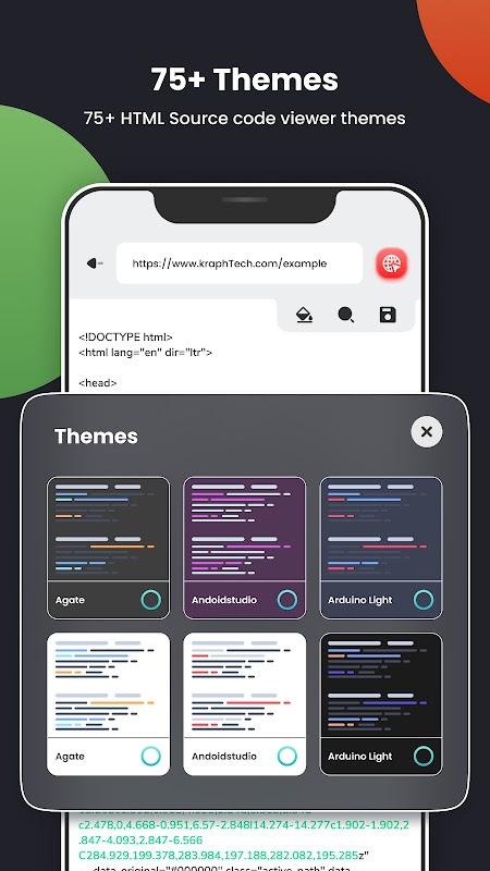 - La funzione del codice sorgente di HTML Viewer include diversi temi vivaci tra cui scegliere.