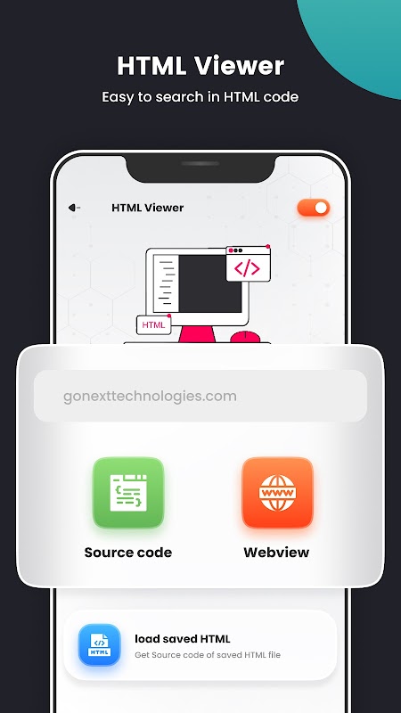 -- Con HTML Viewer puoi sfogliare qualsiasi sito web che desideri e puoi persino scaricare il codice sorgente di quel sito web con un solo clic.