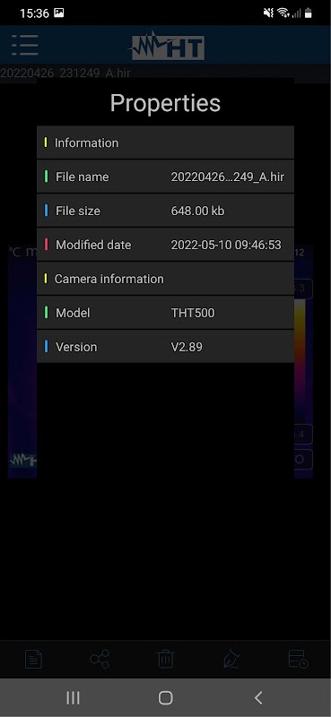 HTProCamera è un software professionale disponibile su Smartphone Android per la visualizzazione in tempo reale delle immagini presenti a display dei modelli di termocamere a infrarossi THT500x, THT600x e THT80 di HT ITALIA, eseguire analisi avanzate e creare report per condivisione con altri utenti.