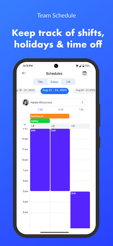 Nota: alcune funzionalità come la fatturazione, i report completi e la pianificazione sono disponibili tramite le app desktop e web di Hubstaff.