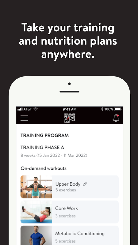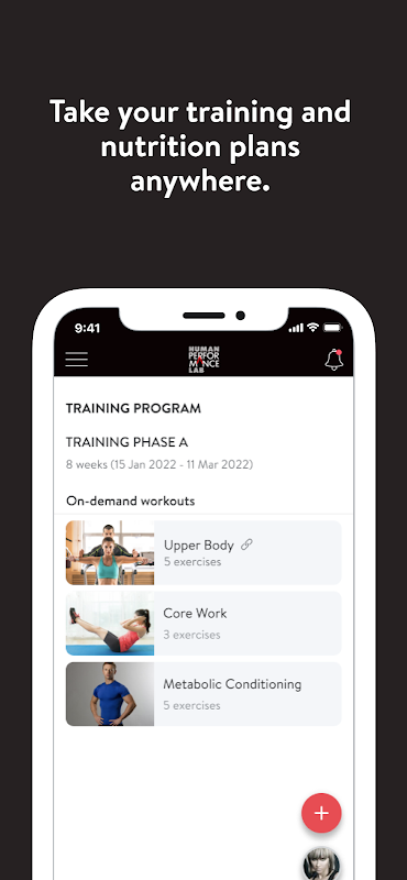 Con l'app Human Performance Lab, avrai accesso a programmi di allenamento progettati appositamente per aiutarti a raggiungere i tuoi obiettivi di fitness e salute! Puoi seguire e monitorare i tuoi allenamenti, la tua alimentazione, le tue abitudini di vita, misurazioni e risultati, tutto con l'aiuto del tuo coach.