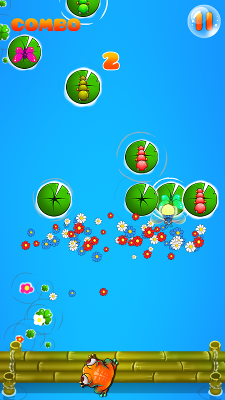 The frog wakes up at the morning and feels empty in the stomach. The mother has gone. How to find the foods now? Suddenly, there are something in the pond surface...that is how the hungry frog game begins...