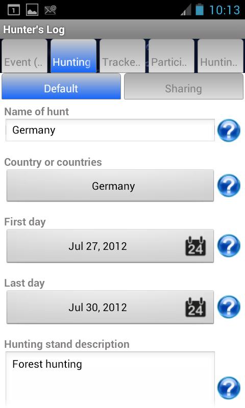 Each event comes with formatted fields to record a description of the event, detailed notes, weapon used, type of game, weight, length, distance to game, hit point, escape distance, hunting score, etc. Specific fields can be hidden and an unlimited number of additional fields can be added.