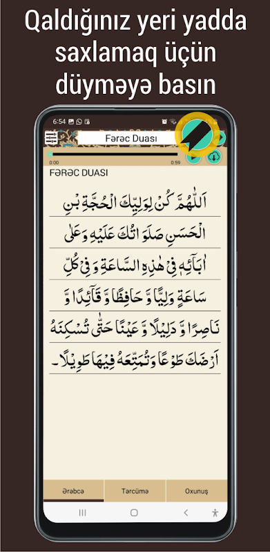 L'applicazione contiene Holy Quran, Mafatihul Jinan, Sahifeyi Sajjadiyya, Sahifeyi Mahdiyya, tempi di preghiera, calendario Hijri, calcolatrice rakat e notifica azan.