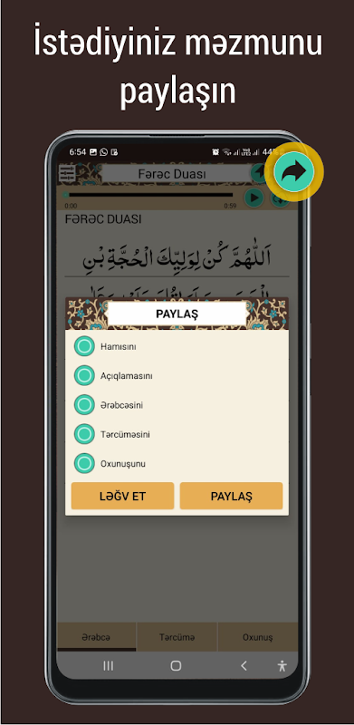 • Possibilità di condividere qualsiasi contenuto compreso il testo arabo