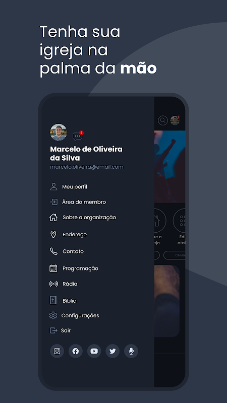 Risorse disponibili nell'applicazione: notizie, agenda della Chiesa, eventi, contenuti, progetti, trasmissione in diretta e modulo didattico.