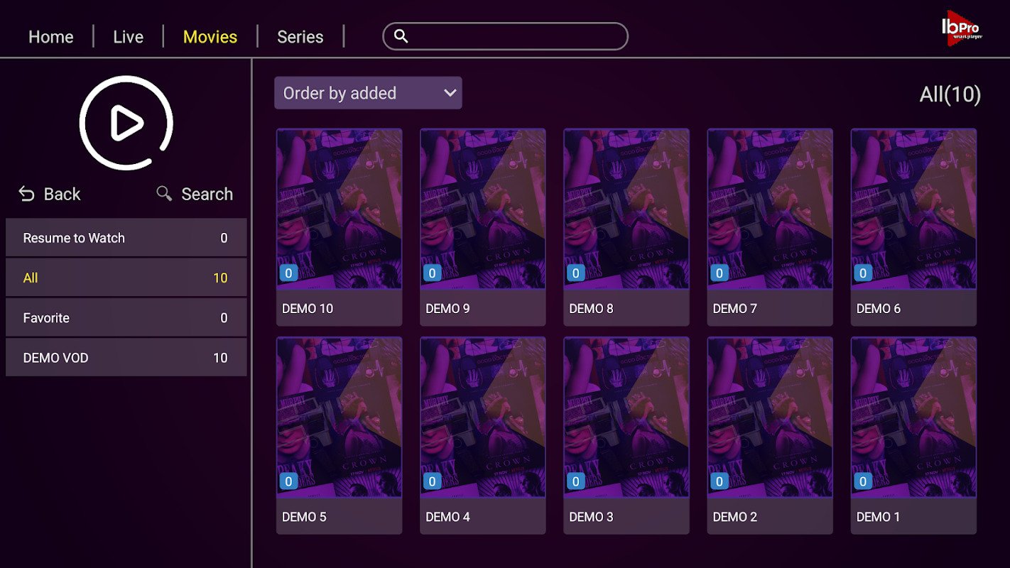 Ibpro Smart Player non fornisce né include alcun contenuto multimediale. Gli utenti devono aggiungere le proprie playlist o abbonamenti IPTV che sono legalmente autorizzati a utilizzare.