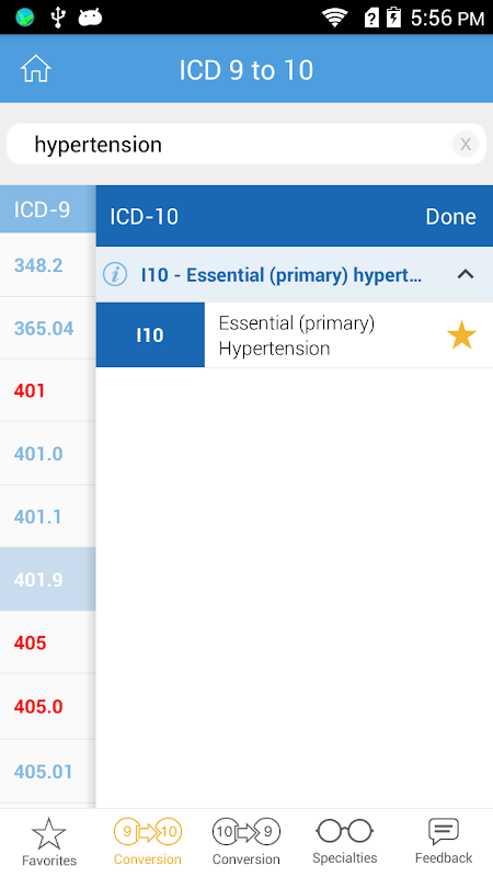 Applicazione innovativa di MTBC per ICD10 transizione è uno strumento straordinario per le pratiche mediche e medici per convertire ICD-9 codici diagnostici di ICD-10 versione di codifica completo. Questo pratico strumento per risparmiare tempo include tutti i codici ICD9 ei rispettivi codici ICD10. Il nostro ICD 9-10 convertitore / applicazione fornire un codice ICD10 veloce che cerca addirittura si può facilmente aggiungere i codici ai preferiti. Si tratta di un accesso unico rubinetto da tua specialità per lo più usato ICD 9 e le loro corrispondenti ICD 10 codici.