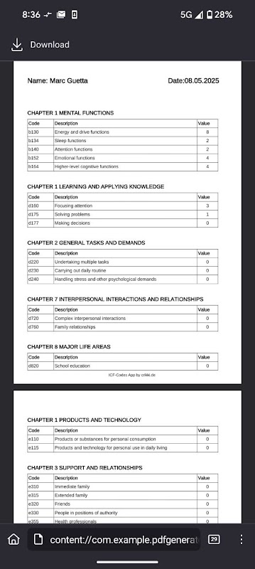 Tutti i codici ICF ufficiali dell'OMS inseriti nel database offline. Nessuna pubblicità, nessuna autorizzazione necessaria.