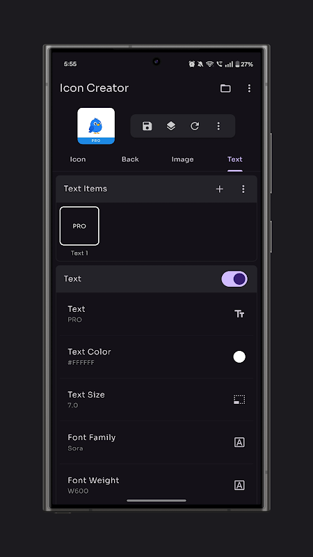 Icon Creator è uno strumento completo progettato per semplificare il processo di creazione di icone e loghi. Con un'ampia libreria di icone, funzionalità di ricerca intuitiva e una gamma di opzioni di personalizzazione, gli utenti possono facilmente personalizzare i propri progetti in base alle proprie esigenze. Modifica proprietà come allineamento, posizione, rotazione, opacità, dimensione e colore, con funzionalità aggiuntive tra cui ombre delle icone, sfondi e bordi. Gli utenti possono anche sfruttare la personalizzazione del colore di sfondo, le sfumature e le immagini, oltre alle opzioni per forme e stili dei bordi. Incorpora immagini dalla galleria con adattamenti, filtri e bordi personalizzabili oppure aggiungi testo con selezione del carattere, spessore, stile, spaziatura ed effetti ombra. L'app supporta la sovrapposizione di icone, immagini e testo, con la possibilità di regolare l'ordine dei livelli e persino scegliere colori da immagini esistenti o invertirli.