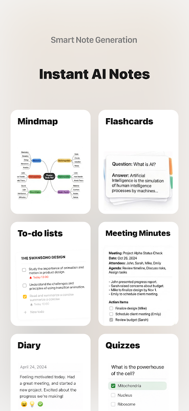 ○ Ottimizzazione AI: potente strutturazione automatizzata del testo, generazione di titoli, tagging e formattazione. Il contenuto rimane logicamente chiaro, facile da leggere e comodo da cercare. Le note ben organizzate rendono la ricerca delle informazioni più rapida.