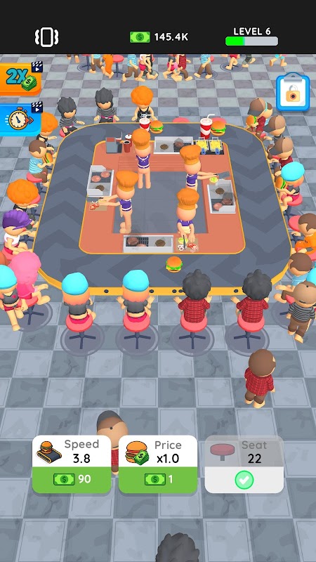 Inizia con un semplice chiosco di hamburger e guarda gli ordini arrivare. Tocca per servire i clienti affamati, guadagnare denaro e reinvestire nel tuo impero alimentare in crescita.