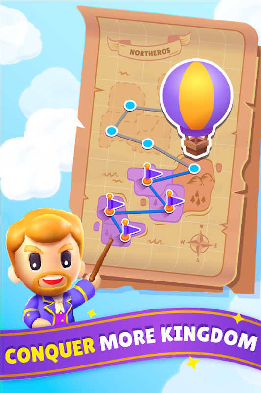 "Sali sulla tua barca e inizia il tuo viaggio per diventare un re con il nuovo e divertente gioco di puzzle Kingdom Link! Progetta il territorio del regno dei tuoi sogni collegando varie tessere sulla terra che scopri. Ognuna di esse ti fa guadagnare oro che puoi usare per creare uno glorioso! Una volta che sei abbastanza ricco, puoi costruire edifici per maggiori guadagni! Quando le cose si fanno più affollate, lascia che i tuoi manager raccolgano le tue ricchezze.
