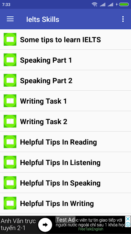 L'applicazione IELTS Skills fornisce suggerimenti utili, esempi di praticare esercizi e lezioni interattive per aiutare a migliorare le capacità di affrontare e risolvere in ogni attività tipica. Seguendo suggerimenti e praticare diligentemente si otterrà punteggio atteso al test IELTS.