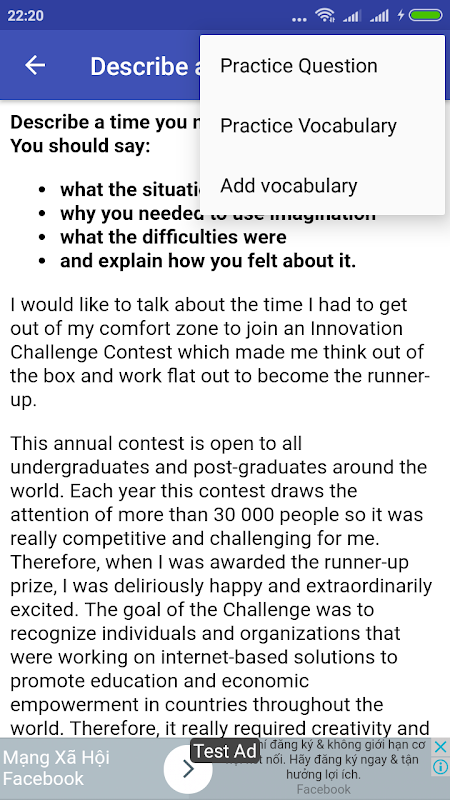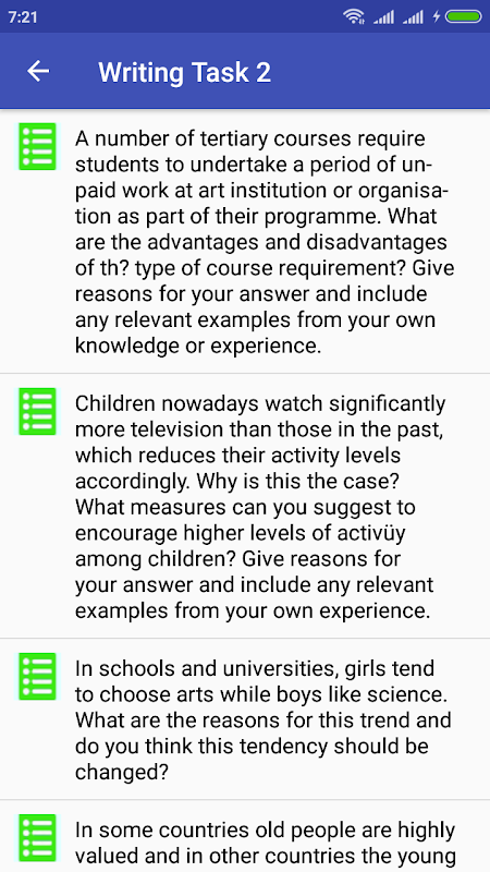 L'applicazione Parlando IELTS fornisce suggerimenti utili, esempi di praticare esercizi e lezioni interattive per aiutare a migliorare le capacità di affrontare e risolvere in ogni attività tipica. Seguendo suggerimenti e praticare diligentemente si otterrà punteggio atteso al test IELTS.