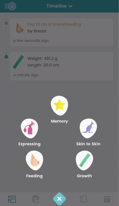Ci auguriamo che con questo materiale siamo in grado di aiutare a preparare e coinvolgere i genitori in questo viaggio, e capire cosa sta succedendo al loro bambino. La nostra applicazione dà l'opportunità di imparare di più su cure neonatali, grafico esprimere, pelle-a-pelle coccole e il progresso alimentazione e la crescita così come gli eventi di registrazione, immagini e ricordi del vostro viaggio.
