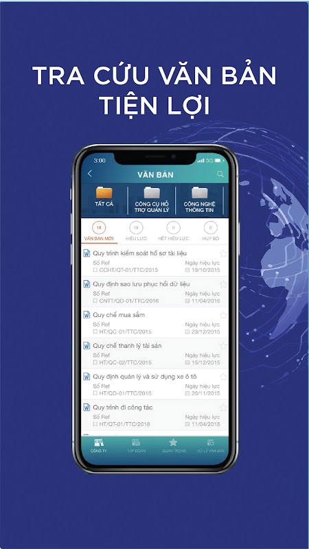 - Văn bản lập quy: tổng hợp và quản lý các văn bản lập quy của công ty.