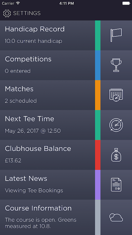 Accedere alle informazioni intelligentgolf facilmente attraverso l'applicazione. Con le notifiche push per lo stato naturalmente, le transazioni EPOS e risultati eliminazione diretta, così come l'accesso veloce ai risultati, le prossime gare e le notizie del club, le informazioni di appartenenza è davvero nel palmo della vostra mano.