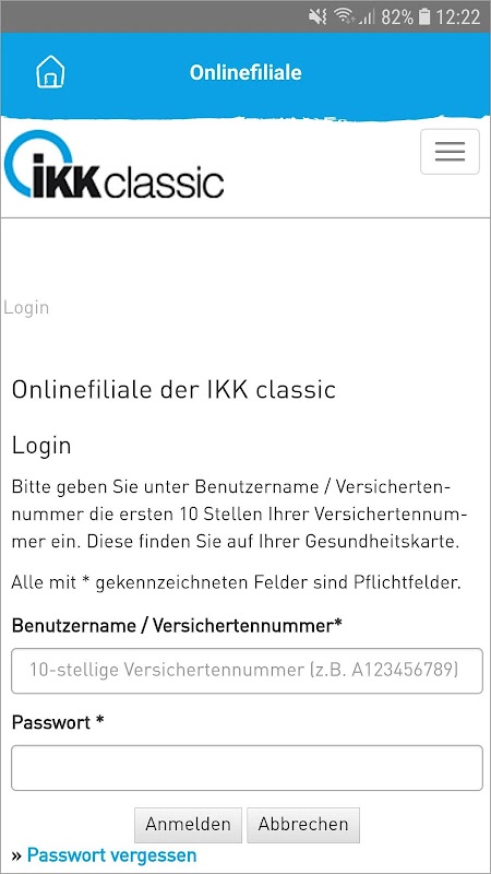 Il dispositivo potrebbe comportarsi in modo imprevedibile su alcuni dispositivi. Questo può includere sono dovuti al software operativo specifico del produttore. Le funzionalità potrebbero non funzionare o l'app potrebbe bloccarsi. In alternativa, è possibile raggiungere la filiale online di IKK tramite il browser: Meine.ikk-classic.de