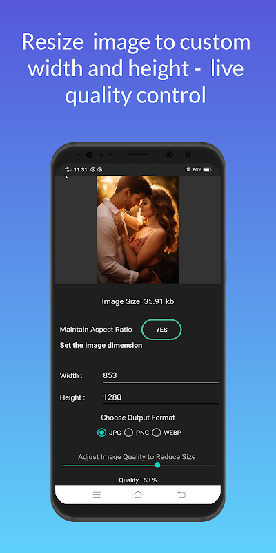Formati multipli: salva le immagini ridimensionate come JPG, PNG o WEBP ad alta efficienza.