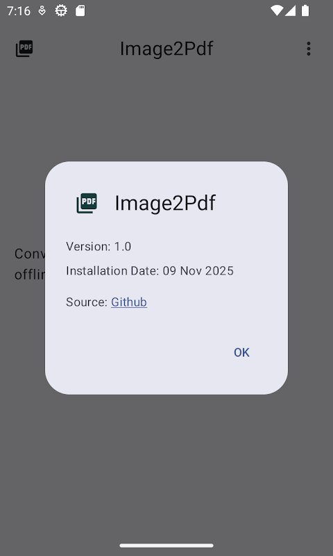 Questa app ti aiuta a convertire le immagini dal tuo dispositivo in un file PDF. L'intera conversione avviene offline. L'app non necessita di connessione a Internet.